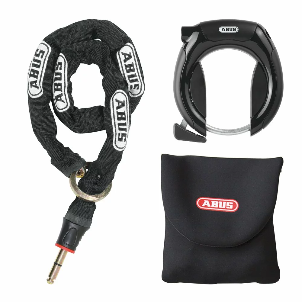 Stærk pakke med Abus bestseller ringlåsen ProShield 5950 sammen med kratig plug-in kæde.