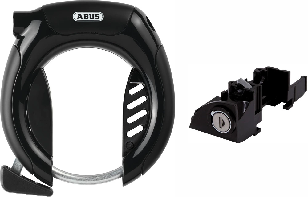 Abus Pro shield 5850 ringlås samt en Bosch batterilås – begge sort.