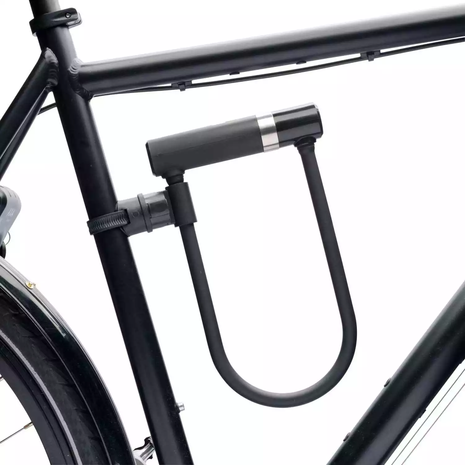 Der medfølger beslag til låsen, så den kan monteres på cyklen.