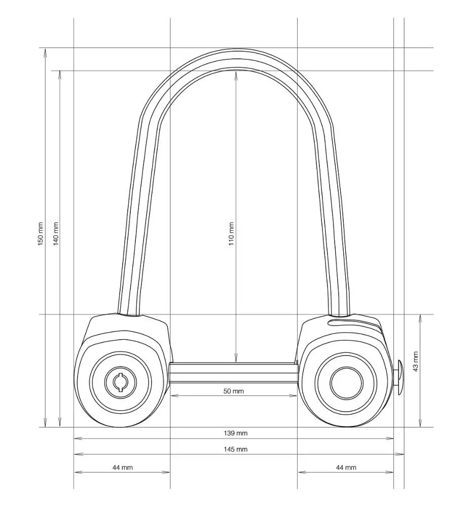 Smal model der passer til bl.a. racercykler – måler ca. 5,5 cm mellem låsehovederne.