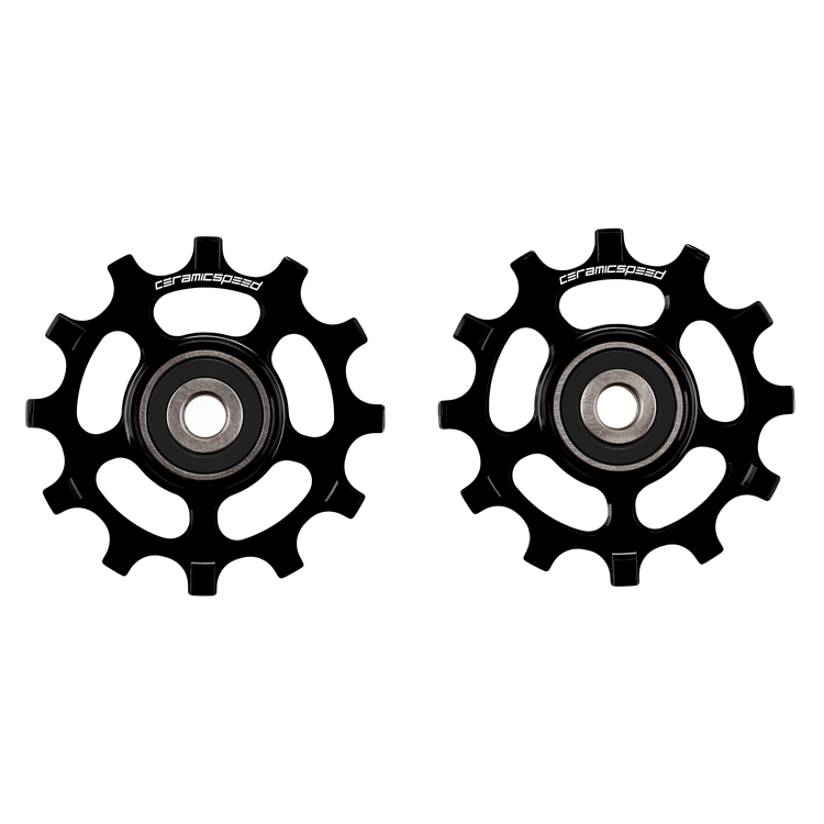 12-tands pulleyhjul fra CeramicSpeed med keramiske lejer. Pulleyhjulene er med de populære keramiske lejer som CeramicSpeed er kendt for, hvilket gør at de ruller bedre end stort set alle andre lejer på markedet.