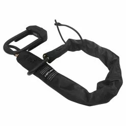 Bøjlelåsen er lavet i en 14mm bøjle i hærdet stål, mens kædens led er i 10mm hærdet stål.