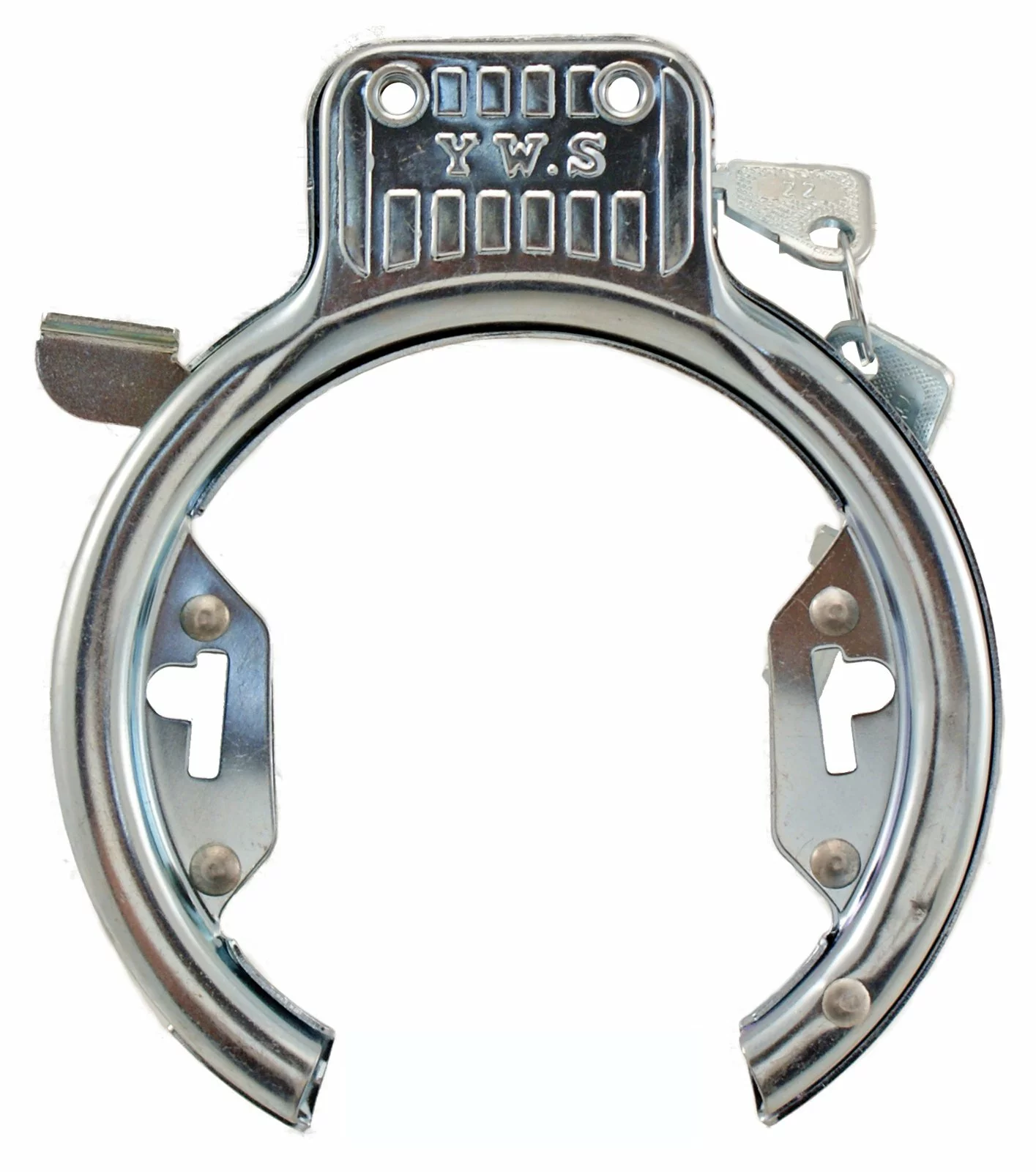 Ringlås til montering på stel, på enten skråstiverne eller øverst, med medfølgende bolte.
