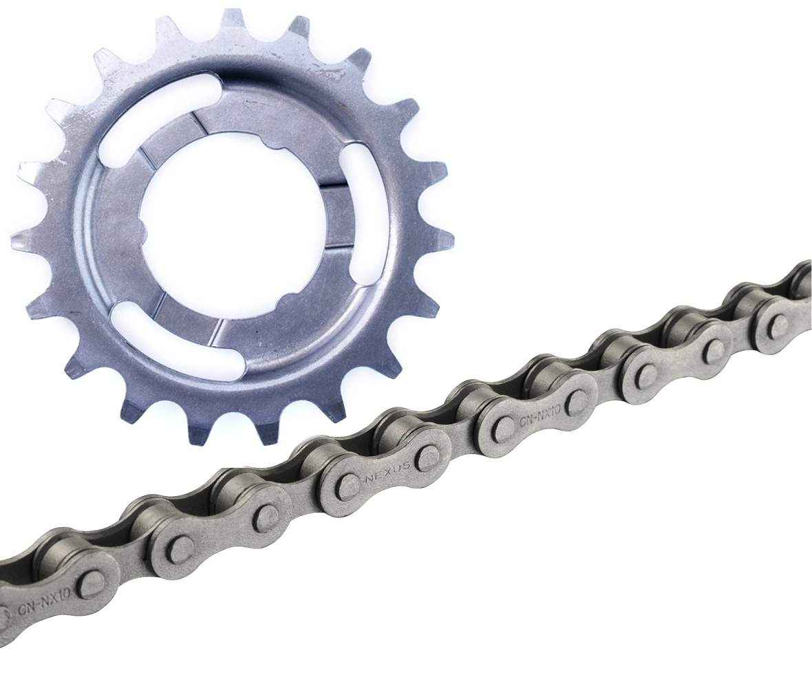 Pakke med Shimano Nexus rustbeskyttet kæde og gearhjul til indvendige gear.
